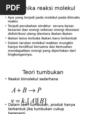 Teori tumbukan pdf. Teori tumbukan dan faktor yang mempengaruhi laju reaksi dalam postingan kali ini rukim id akan berbagi informasi materi kimia kelas 11 semester 1 kurikulum 2013 yaitu tentang laju reaksi tulisan ini dapat dijadikan catatan kimia yang dapat di download filetype pdf. Pada gambar 3 7 ditunjukkan bahwa anggapan itu tidak selamanya berlaku untuk setiap tumbukan. Max menyatakan bahwa ketika partikel reaktan bertumbukan satu dengan yang lainnya hanya beberapa persen tumbukan saja yang menyebabkan perubahan kimia yang.